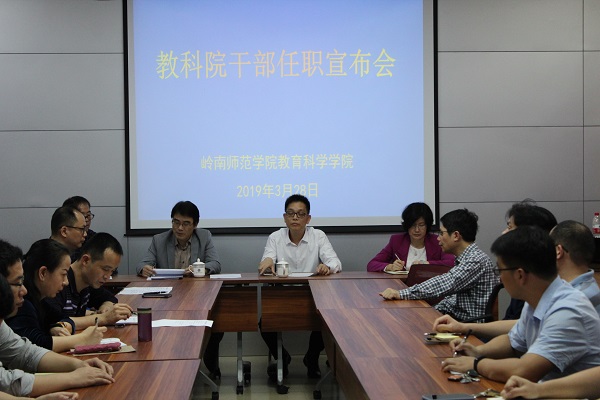 3月28日下午,根据学校党委安排,教科院于408会议室召开干部任免宣布会。学校党委常委、副校长戴黍、党委组织部副部长陈碧琼、教科院班子成员及党支部书记、各系室正副主任、分工会主席、辅导员出席了此次会议。会议由教科院党委书记郭和才主持。