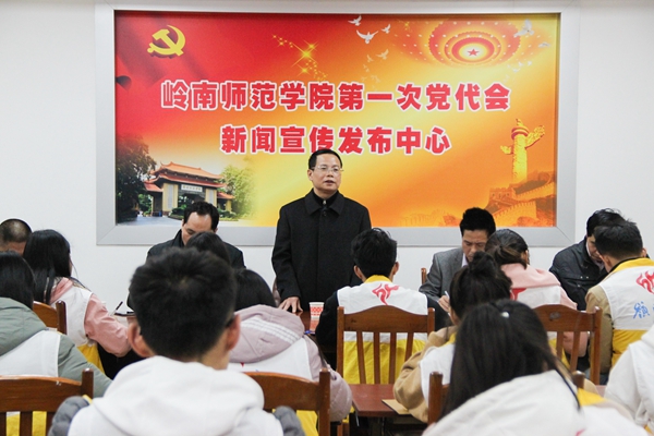 岭师新闻中心讯:1月17日晚上,在学校第一次党代会召开之际,学校党委副书记、纪委书记王恒胤来到大学生记者团办公室,看望全体参加党代会宣传工作的学生记者,鼓励大家通过这次的实践,长见识、增才干,多出精彩作品鼓舞人心。