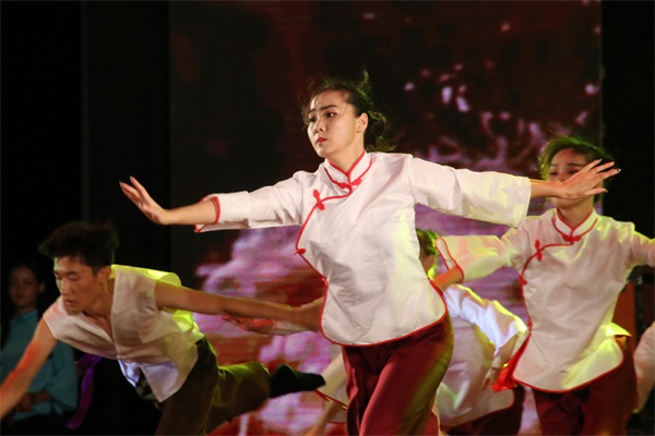 舞蹈《黄河》那飞扬的红绸带、雄壮的音乐配合我校学子矫健的舞步,让这个义演节目达到了群众性、娱乐性与时代性一体,既展现了岭南师院学生的青春风采,又丰富了当地群众的娱乐生活。