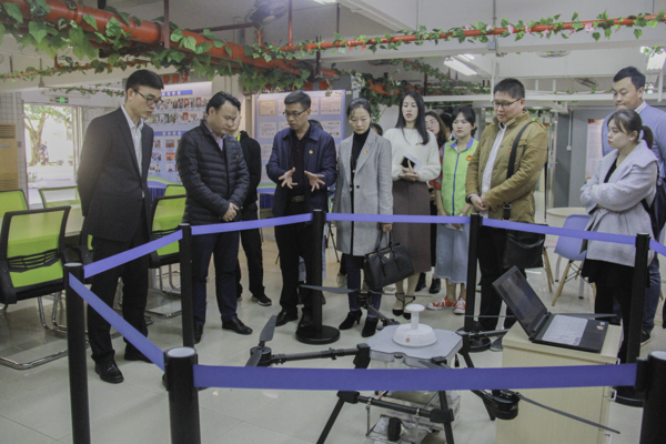 黄达海与廖庆春进行亲切交谈后,一同参观了校园,并走访了大学生创新创业实践基地和社会实践成果联展。