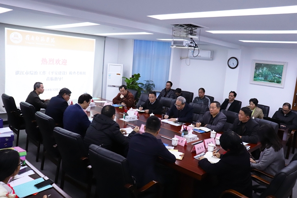 考核组成员对我校校园110报警救助服务中心、微型消防站、视频监控中心、鸿园饭堂、志道苑学生公寓以及化学实验室等进行实地检查,认真查阅我校综治工作的相关材料并听取了我校工作汇报。考核组认为,我校综治工作管理规范、亮点多、成效好;在安全管理上须提高交通管理规范化、加大学生公寓管理制度的执行力度, 深入开展扫黑除恶专项斗争和杜绝“校园贷”等违法犯罪行为,建设“平安校园”,为“平安湛江”作贡献。
