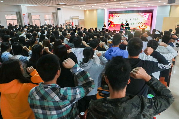 王恒胤在致辞中表示,今年是新宪法修正案颁布实施的第一年,12月4日是我国的第五个国家宪法日。学校深入贯彻落实依法治国和依法治教的有关精神,紧紧围绕“七五”普法规划工作目标,努力推进依法治校工作,将每年的十二月份作为学校的法制宣传教育活动月,深入开展法制宣传教育活动,让宪法深入人心,进一步增强全校师生员工的法制观念,推动全校增强宪法意识,提升学校依法治校水平,推进法治校园建设。他要求,本次法制宣传教育活动要切实维护宪法尊严,树立宪法权威;要创新法制宣传教育形式,提高法制宣传教育效果;要坚持法制宣传教育与法制实践相结合,勉励同学们真正做到尊崇宪法,遵守宪法,维护宪法,努力成为一名有理想、有本领、有担当的新时代大学生。