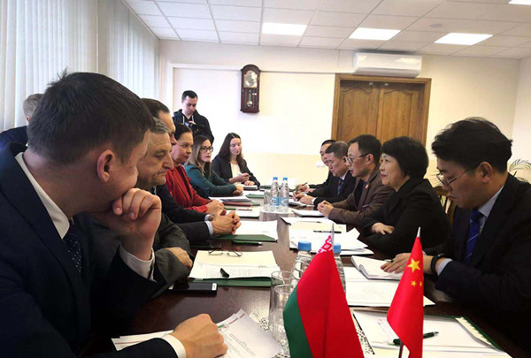 11月20日,访问团一行奔赴白俄罗斯国立体育大学。当天下午,兰艳泽主持召开会议听取孔子课堂中方负责人的工作汇报,商讨2019年工作计划和2019年财务计划。