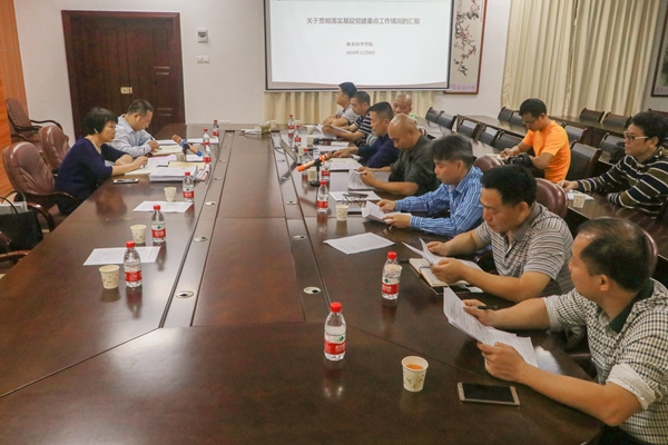 兰艳泽认真听取了各学院党委书记的工作汇报,认真查阅了会议记录本、工作台账等资料,肯定了各挂点单位贯彻《广东省加强党的基层组织建设三年行动计划(2018-2020年)》、落实基层党建重点任务的工作,对各单位反馈存在的困难问题进行了回应,并提出指导意见。