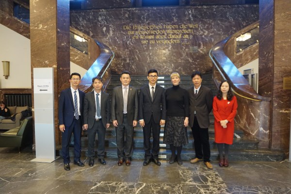看着学校主楼大理石墙壁上马克思的名言和多位诺贝尔奖获得者的照片,一行人为这所古老大学深厚的底蕴所震撼。黄达海表示,非常荣幸有机会来到洪堡大学,此次出访德国还有一个重要的背景,即德国著名化工集团巴斯夫将投资约100亿美元,在湛江建设世界级石化产业园。为此,学校计划成立巴斯夫学院,提供一系列的教育服务,希望能与洪堡大学建立良好的伙伴关系,在各方面开展友好合作。