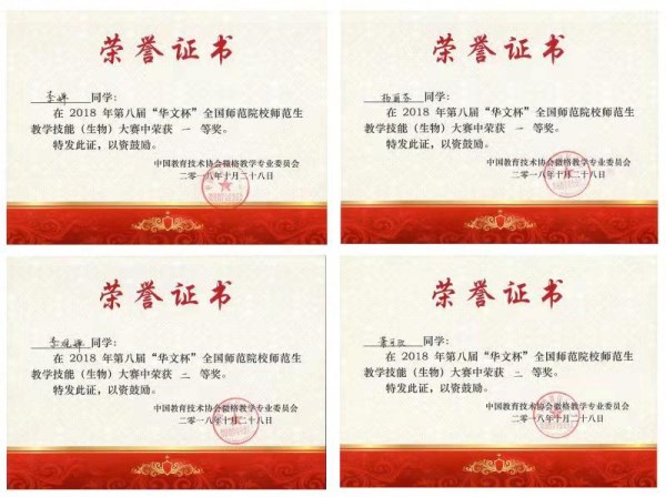 10月26日-28日,由中国教育技术协会微格教学专业委员会主办的第八届“华文杯”全国师范院校师范生教学技能大赛在南京晓庄学院顺利举行。其中,生物组参赛学校共计89所,教学技能参赛选手高达349人,教学设计作品359项。10月12日-14日,由广东省教育厅主办的第六届广东省本科高校师范生教学技能大赛(生物组)在肇庆学院举行,来自全省10所高等师范院校,经过层层选拔的39名生物科学专业本科生参加了此次省赛。