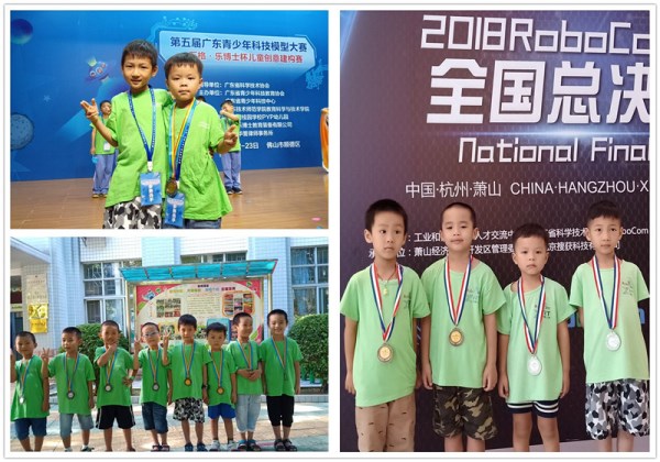 2018年5月,幼儿园8名小朋友参加了第五届广东省青少年科技模型大赛,2人荣获一等奖,6人荣获二等奖。同年7月,4名小朋友参加了2018RoboCom全国总决赛*杭州赛区“勇往直前任务挑战赛中,2人荣获银奖、2人荣获铜奖。