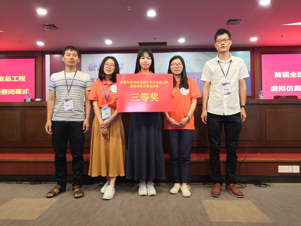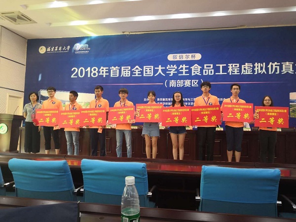 2018年8月23-25日,由教育部高等学校食品科学与工程类专业教学指导委员会、高等学校国家级实验教学示范中心联席会联合主办的全国大学生食品工程虚拟仿真大赛总决赛在江南大学举行。我校化学化工学院食品科学与工程专业彭元怀、张世奇老师指导的,由食品科学与工程专业2016级柯晓宜、邓碧桃、罗海涛同学组成的“岭南师范代表队”以出色的表现荣获南部赛区二等奖,并成功晋级总决赛,并于8月23-25日,在由江南大学举办的总决赛中荣获三等奖。