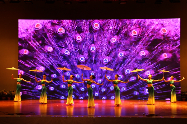晚上举行的联欢晚会,《岭之南,武之韵》的表演展示了中华武术的精粹,一曲《龙的传人》唱出两岸同胞同是炎黄子孙的心声,情景剧《我的美食日记》将台湾美食一一呈现,团康活动《台湛赞赞绽》引起现场互动高潮,两岸学子一齐点赞合唱《母亲的微笑》表达了祖国母亲的浓浓情怀……15个节目精彩不断,高潮迭起,赢得阵阵掌声。