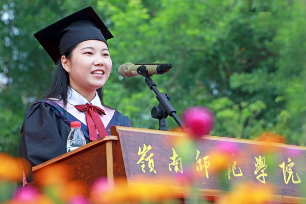 大家早上好!我是来自文学与传媒学院的林秀坤。四年前,我怀揣梦想来到岭师;今天,凤凰花开,离歌响起,回首大学,四年的梦想都圆在了岭师,还带给了我三把打开梦想之门的钥匙。在即将告别母校,踏上人生新征程的时刻,我与大家分享这三把钥匙。