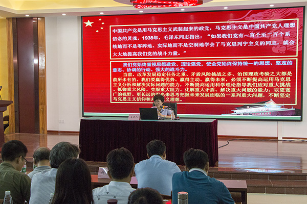 党委宣传部部长谢应明表示,学校正在围绕申硕核心目标,扎实推进“六大工程”和“新师范”建设,全体师生,特别是党员干部要提高政治站位,增强“四个意识”、坚定“四个自信”,以习近平新时代中国特色社会主义思想武装头脑、指导实践、推动工作,学懂弄通做实党的十九大精神。