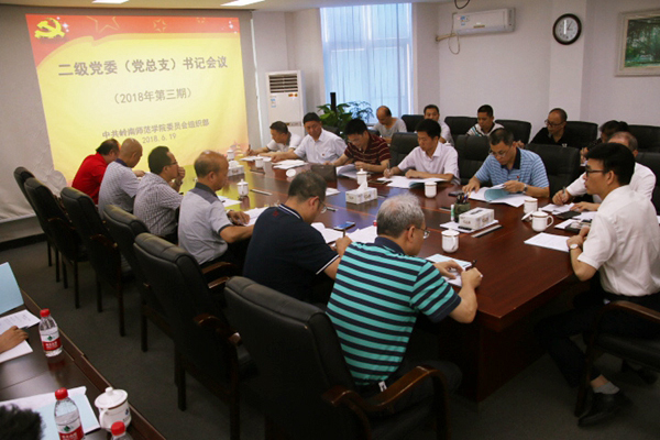 岭师新闻中心讯:6月19日下午,学校在二号会议室召开今年第三期二级党委(党总支)书记会议。会议主要内容是根据上级有关文件精神,结合我校工作实际,对我校近期党建工作重点任务进行部署,会议由党委副书记黄达海主持。