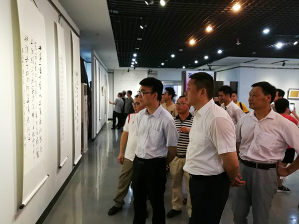 湛江市文广新局局长聂兵,湛江市文联党组副书记、副主席林育春,湛江市书法家协会主席周军,湛江书画院院长王明鹏,湛江市书法家协会副主席、湛江45号美术馆馆长林望,我校党委办公室主任陈恕平,通识教育中心主任蒋金晖,美术与设计学院党政班子成员、教师、书法专业全体学生以及湛江书法爱好者一同参加了开幕式。