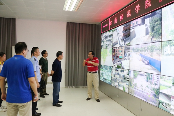 广东省公安厅处长谢荣旭、省教育厅副调研员谢匕夫、湛江市公安局副支队长何观上、市教育局副局长夏开晓等领导一行先后考察了东大门等校内部分场所及校园周边环境安全。