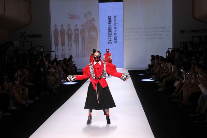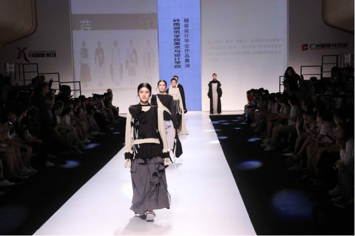 5月21日晚,2018中国(广东)大学生时装周-岭南师范学院美术与设计学院2014级服装与服饰设计专业毕业展演在广州国际轻纺城7楼1号展馆精彩上演。