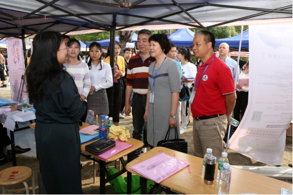 是日,体育馆前人头攒动,气氛浓烈,参展的单位中包括外东莞市沙田镇人民政府宣传教育文体局组团、广州市番禺执信中学、广东韶关实验中学等优质品牌学校,还有内蒙古伊利实业集团股份有限公司,广东壹号食品股份有限公司,大森林医药集团等上市企业参会。