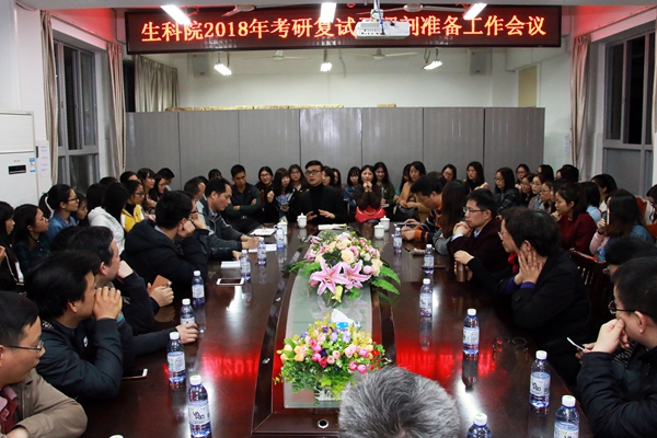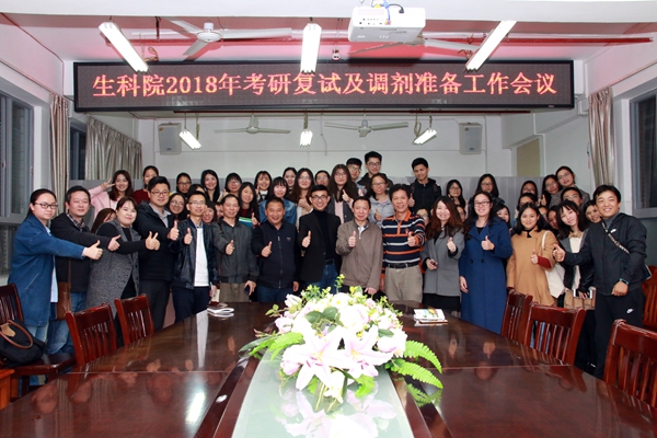 生科院领导、老师为考研学生鼓气加油,鼓励考生要树立信心,把握机遇,走出广东,全面掌握相关信息,密切关注新增的硕士授予点和专业、积极向老师寻找经验和资源,提高被录取的可能性。生科院今年有144人参加研究生考试,按去年国家分数线290分共有92人过线。