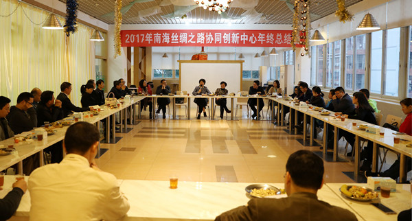1月4日下午,我校南海丝绸之路协同创新中心在鸿园二楼文化餐厅举行“2017年南海丝绸之路协同创新中心年终总结会”。出席本次会议的有学校副校长、南海丝绸之路协同创新中心主任兰艳泽教授,南海丝绸之路协同创新中心常务副主任王亚新教授,校长办公室主任、南海丝绸之路协同创新中心副主任赫云鹏,教务处处长、南海丝绸之路协同创新中心副主任刘惠卿教授,科研处副处长、南海丝绸之路协同创新中心副主任陈东英教授,教务处副处长、南海丝绸之路协同创新中心副主任莫海文教授,科研处处长金义富教授,国际交流处郑志军处长,图书馆陈俊群馆长以及中心科研骨干40多人。