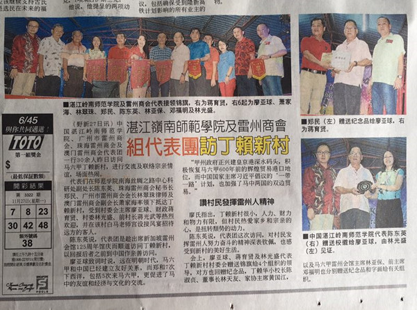 马来西亚华文报纸《中国报》马六甲版11月28日对我校团队的报道