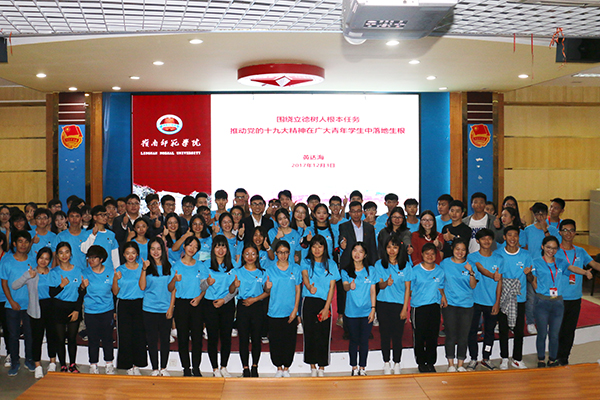 岭师新闻中心讯:12月3日下午,学校党委副书记黄达海以《围绕立德树人根本任务,推动党的十九大精神在广大青年学生中落地生根》为主题,为学校第十五期业余团校全体学员作了一场内涵丰富的专题讲座,强调要以习近平新时代中国特色社会主义思想武装头脑,指导实践、推动工作,促进团员青年成长发展。