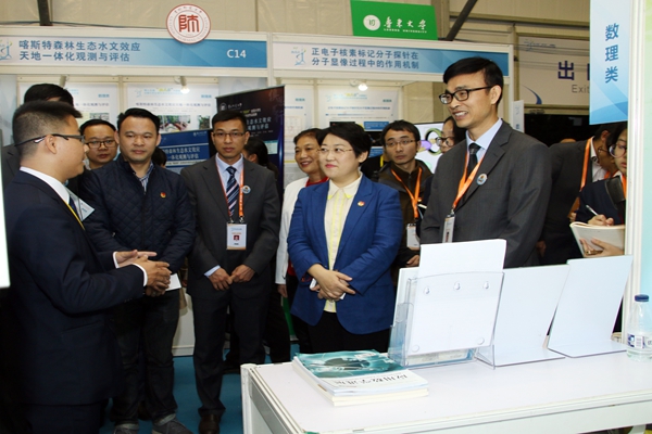 “岭师团队着装统一,精神面貌非常突出,增强了专家评委的印象!”展览现场,共青团广东省委副书记武一婷在我校党委副书记黄达海的陪同下,现场参观了我校的参赛作品《几类具有非线性发生率SIR传染病模型的动力学性质研究》,认真听取参赛学生介绍项目内容,主动了解项目团队的人员构成、研究思路和推进历程,并与参赛师生亲切交流、握手鼓励、合影留念,充分肯定了我校学子的科研创新能力,预祝我校师生在国赛中取得好成绩。