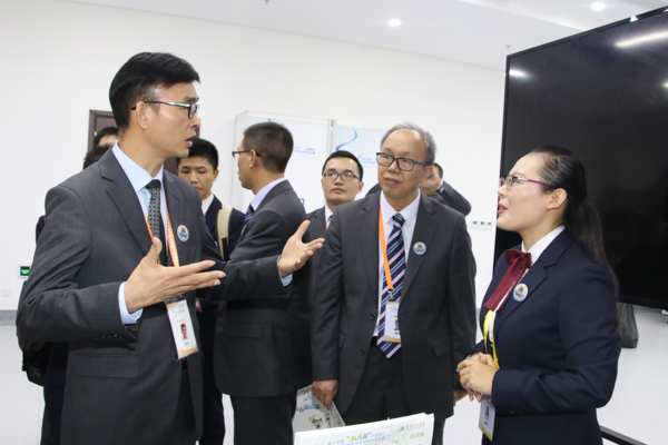 黄达海与指导老师在展位现场,与参赛同学亲切交流,了解每个参展作品的情况,肯定学生的参赛面貌,为参赛队员鼓劲打气。他勉励参赛队员在决赛答辩时要自信自然,抓住专家质询重点,突出作品的核心竞争力,吸引专家评委的注意。一行人还来到全国赛优秀作品展览区,参观了获得全国赛三等奖的作品《基于红外线成像技术构建电饭煲三维温度场的关键技术研究》。