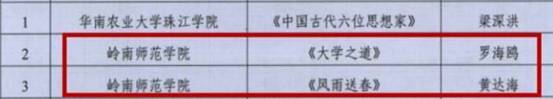 校原校党委书记罗海鸥同志的《大学之道》和校党委黄达海副书记的《风雨送春》喜获在广东省第五届大学生艺术展演活动艺术作品类高校校长书画摄影作品奖,证明了我校领导的优秀风貌,起到了榜样的作用,激励师生们的学习激情。