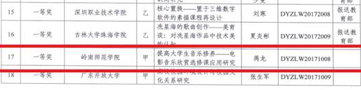 在党的十九大精神指导下,广东省教育厅开展了一系列的大学生艺术类比赛,其中我校不落于时代潮流,紧紧追随新时期的教育理念,全面培养全能型的人才,在众多高校共同参与的比赛中均获得优异的成绩。