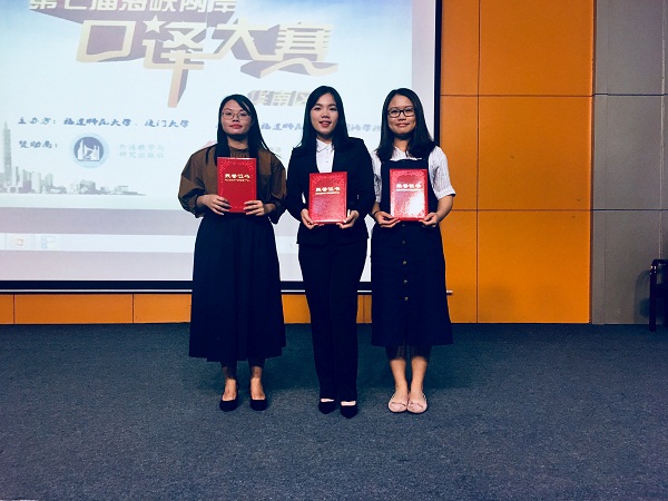 11月5日,第七届海峡两岸口译大赛华南地区区级赛在福建师范大学隆重举办,该大赛由福建师范大学主办,厦门大学协办。我校外国语学院陈拔萃老师指导的陈夏怡、李宛莹和张童三位同学均载誉而归,分获一个三等奖和两个优胜奖。