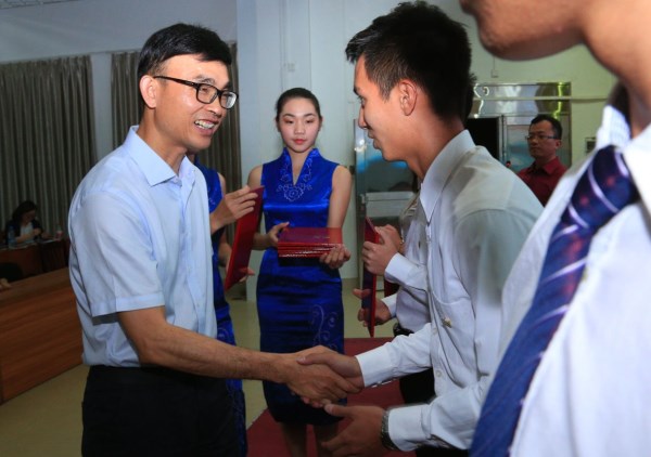 会上,黄达海为“校园文明督察”、“班级学风观察员”、“学生党员先锋岗”和“学生干部示范岗”等代表颁发了上岗证书。在评估期间,他们将扮演监督员的角色,纠正校园中不良的风气和习惯,为评估工作贡献自己的力量。