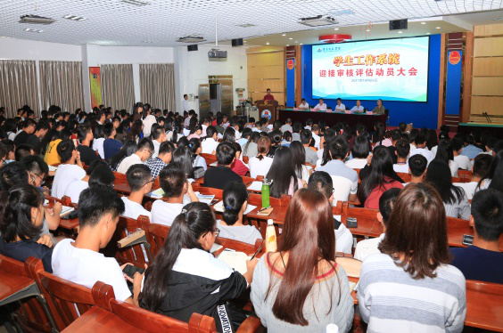 本着“建设良好学风、共迎审核评估”为主要指导思想,10月25日晚,我校在第三教学楼311会议室召开了学生工作系统迎接审核评估动员大会。校党委黄达海副书记,校党委组织部邓逢光部长、学生工作部(处)李粤部(处)长、教务处刘惠卿处长、校团委李发武书记,学工部和团委全体干部,二级学院党委副书记,全体辅导员以及校、院学生干部、学生代表共三百多人参加了会议。