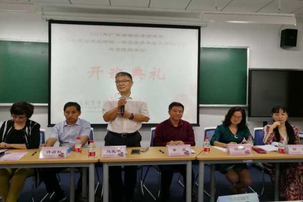 9月22日,由岭南师范学院广东省中小学教师发展中心主办的“强师工程”2017年广东省跨年度递进式培训项目——中小学骨干校长跟岗研修班北京跟岗学习环节的开班典礼在北京教育学院黄寺校区举行。北京教育学院原党委书记马宪平、岭南师范学院副院长黄崴、北京教育学院高级研修中心主任陈丽、岭南师范学院培训学院院长许占权等出席开班典礼。开班典礼由北京教育学院高级研修中心副主任王秀艳主持。