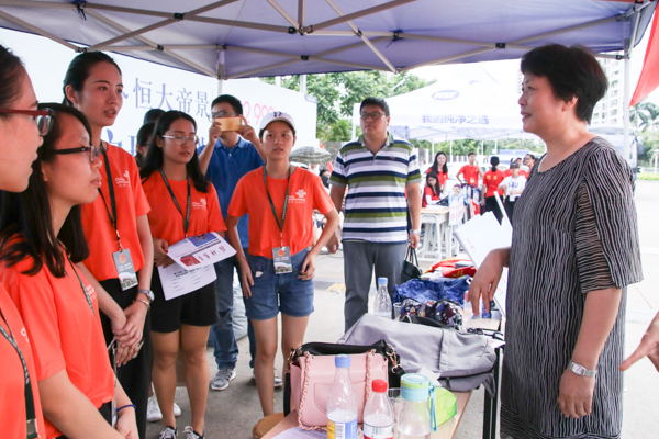 9月9日下午三点,学校兰艳泽副校长在校团委李发武书记等人的陪同下,亲自前往麻章车站和海田车站接待点指导迎新工作。烈日炎炎,现场参与迎新工作的学生干部及志愿者们脸上热汗直冒,却仍然带着最美的微笑热情地为新生服务。兰艳泽到达现场后,首先详细听取了值班的李仁煜老师和莫然老师的工作汇报,给予学生干部和志愿者们高度的赞扬和亲切的慰问。兰艳泽与学生干部深入交流,叮嘱他们“多喝凉茶,预防中暑”,关心现场物资准备、轮次换班、接送新生等情况,并重点询问了贫困学生与外省学生的报到情况。兰艳泽表示,学生干部的精神面貌给新生和家长带来岭师的第一印象,干部们一定要热情周到地为他们服务,务必让新生和家长满意。