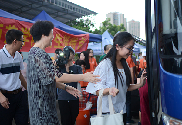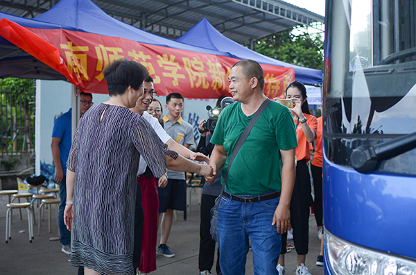 学校领导老师的关怀备至和师兄师姐们的热情招待让学生和家长脸上充满了笑容,他们的谈话中流露出对未来学习和生活的期待。“一下车就有师兄师姐迎上前来,把笨重的行李从我们手中‘抢’过去,学校领导也对我们嘘寒问暖,真的让我们感觉又惊讶又温暖。”新生们纷纷感慨,“在这样的大热天里,领导们前来接待我们,太辛苦了。真的很感动!”班车接送时,兰艳泽更是带领团委老师着手为新生提携行李,不断叮嘱专车的司机务必注意安全,要求跟车的干部做好相关的行车准备。在兰艳泽的微笑与招手中,新生们满怀希望迈入岭南师院!