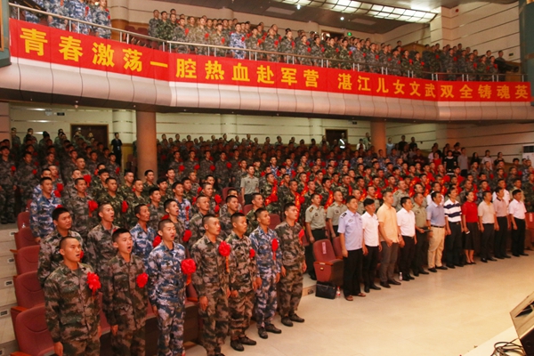湛江军分区冯振鹏副司令员、战备建设处张文斌上校、动员处处长韦斌上校、政治工作处主任项梁上校,各县(市、区)征兵办主任,湛江市委宣传部、市教育局、公安局、民政局、卫生和计生局、团市委以及大学生新兵代表、大学生代表共同参加了本次活动。