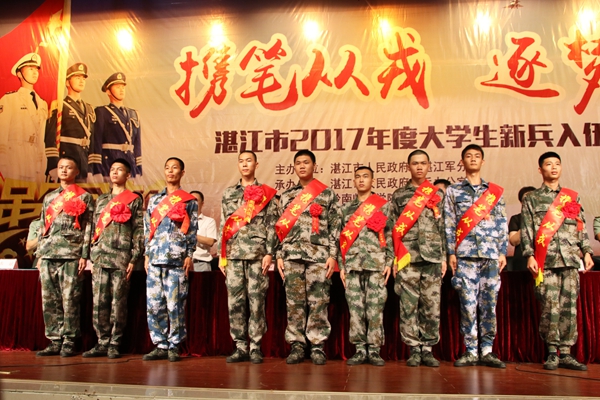 今年湛江市应征入伍大学生青年共817人,大学生征集比例创历史新高,817名大学生新兵穿过“报国门”,踏上新征程,充分体现了湛江市学生应征青年浓厚的爱国情感和报国热情。