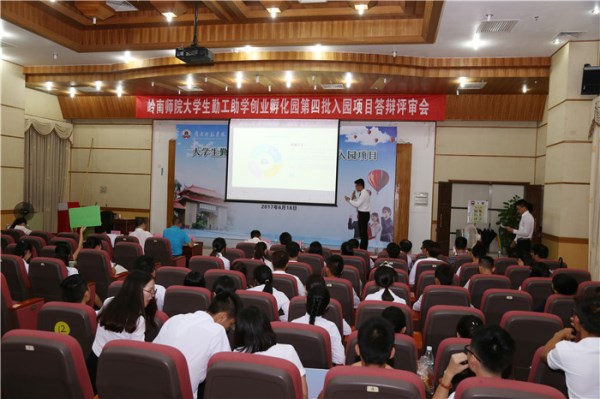答辩会采用项目代表现场陈述、答辩、评审专家合议评审的方式进行,15个团队的代表轮流上台汇报项目内容并进行答辩。各个主讲人用精心制作的ppt就项目介绍、运营思路、产品优势、财务分析、宣传营销策略、风险规避等方面向评委老师介绍了项目的基本情况。其中有宣扬岭师文化的“端·来自岭师的礼物”、结合感光技术的“‘雅趣’文化传播工作室”以及推广vr技术的“视界.虚拟现实体验馆”等。