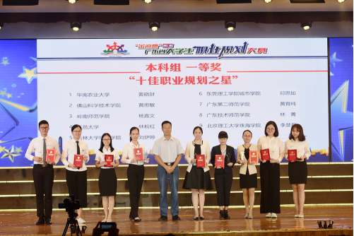 本届题为“规划当下,赢取未来”的业规划大赛,自4月7日启动以来,得到了省内众多高校和学生的积极响应,吸引了来自中山大学、华南师范大学等135所高校15.1万名在校生踊跃参赛,所提交的职业规划作品共计11.4万多份。通过校赛、省初赛、省复赛的层层选拔,本科组共有20名学子进入最终的决赛。决赛由作品评审、现场PPT展示、情景模拟三个部分组成。在PPT展示环节,我校选手杨嘉文以“小学语文教师”为职业目标,通过图文并茂的表现形式,以一个“富有激情”的小学语文教师形象深入阐述了自身的性格条件、职业能力及所处环境,并就如何达成目标做了详细的规划及相应的风险评估、职业备选;在情景模拟环节,她通过小品剧演绎的表现形式,就“如何与多动症儿童及其父母进行良性沟通”这一主题,展现了一位未来教师所需要具备的基本技能和素养。她的分条缕析、步步为营及精彩演绎,赢得现场评委及参赛选手纷纷点赞,并最终斩获殊荣。