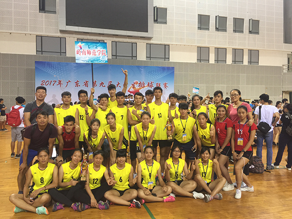 我校男排小组赛四胜一负直接晋级四强,取得了半决赛的资格,半决赛对阵广州体院以1:3负于对手,在季军争夺战中1:3负于华南师范大学,但其中有两局的比分都是23:25负于对手。我校女排在比赛过程中逆转战胜了广东石油化工学院、广州中医药大学等高校,取得了历史性的突破,获得了第五名。