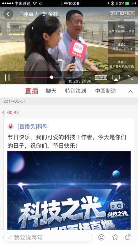 据悉,这次网易直播是中国科协联合网易共同发起100场覆盖全国的“《中国的一日》之科技工作者”特别直播。 受邀的100位科技工作者为“互联网+全民科普”贡献了力量。与此同时,网易新闻还刊发了《 “种草人”刘金祥:从沙漠种草到屋顶绿化》为题的报道。