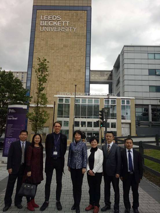 兰艳泽副校长一行在英国利兹贝克特大学校园合影