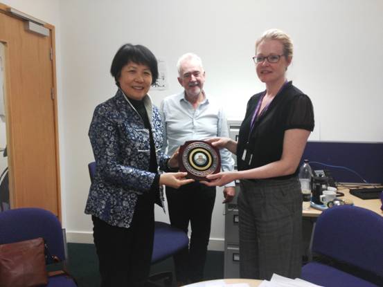 兰艳泽副校长向英国利兹贝克特大学赠送我校校徽