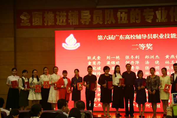本届高校辅导员职业能力大赛由广东省教育厅主办,教育部高校辅导员培训和研修基地(华南师范大学)承办,于4月6-9日在北京师范大学珠海分校举行。全省129所高校选派的248名辅导员选手齐聚一堂,同台竞技,创造了我省历届竞赛中参赛选手人数的最高纪录。竞赛经过理论考试(含博文写作)、主题班会、案例分析、谈心谈话和主题演讲五个比赛项目的激烈角逐,最终评选出一等奖10名,二等奖50名,三等奖100名和五个项目的单项奖各10名。面对历届竞赛中最多的竞争对手,面对大赛新启用的全新题库和新设立的淘汰赛制,我校两位参赛老师沉着应对,凭借良好的职业素养一路闯关,终获佳绩,展现了我校辅导员队伍的风采.