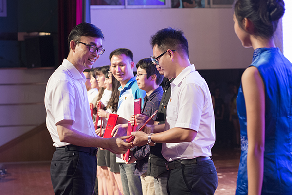 晚会上,一段视频回顾了我校共青团的工作情况与主要成效。过去一年,我校各级团组织和广大团员青年高举团旗跟党走,深入学习贯彻习近平总书记系列重要讲话精神,紧紧围绕“凝聚青年、服务大局、当好桥梁、从严治团”四维工作格局的目标任务,做了大量富有成效的工作,取得了良好的育人效果,先后获得“全国大学生暑期'三下乡'社会实践活动先进单位”、“广东省五四红旗团委”等荣誉称号,为学校创强提质、转型发展作出了积极的贡献。