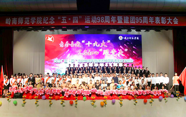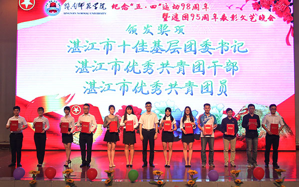 晚会以颁奖与表演穿插进行的形式,歌舞青春、唱响岭师,传承五四爱国精神。现场颁出的奖项有“湛江市五四红旗基层团委标兵”、“湛江市十佳基层团委书记”、“校共青团先进工作者”、“十大团干标兵”、“十大团员标兵”、“十大学生会干部标兵”等十余项。节目表演更是精彩绝伦:舞蹈《脊梁》刚劲有力,振奋人心;健美操《亦舞飞扬》朝气蓬勃,活力四射;合唱《五月的鲜花》激情澎湃,豪情万丈,将全场气氛推向高潮。动听的歌声,曼妙的舞姿,激昂的朗诵,让与会人员真切感受到青春的魅力。