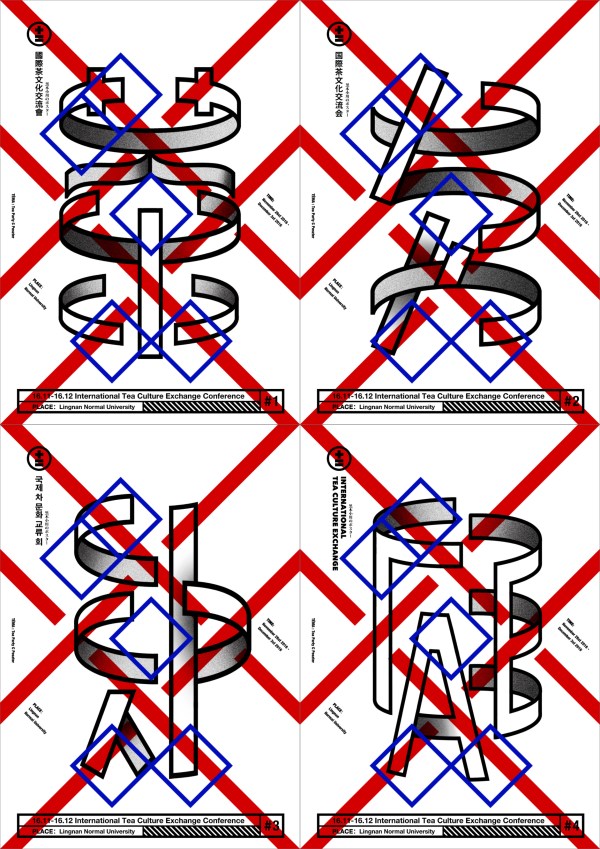 张浩歌的作品获奖是以自己平时留心观察茶叶采摘到炒制中的一系列物体形态为主体元素,立足于宣传中华优秀传统文化同时,融入世界元素。该作品创作得到李强老师的悉心指导。作品是一个以“tea”为元素,做立体化呈杯子形态的文字设计,定位为“国际茶文化交流会”,延展系列化设计“中、英、日、韩”,突出“国际会议”以及“交流”的概念,增强视觉冲击力。