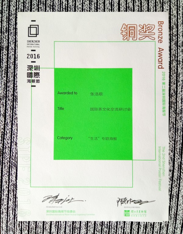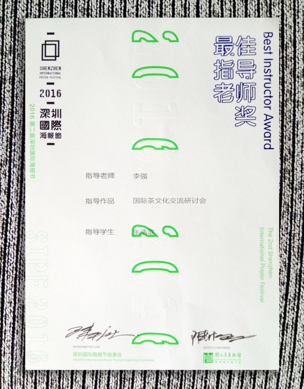 近日,第二届(深圳)国际海报设计比赛组委会传来喜讯,我校美术与设计学院14级视觉传达设计专业海报作品《国际茶文化交流研讨会》在大赛中脱颖而出,荣获铜奖,李强老师获得最佳指导老师奖。