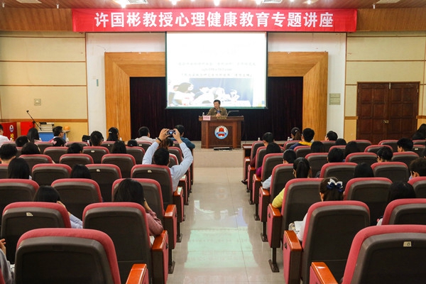 3月24日,广东外语外贸大学原副书记、副校长,现任广东省人力资源研究会会长、广东省高校文化素质教育教学指导委员会常务副主任、广东省高校心理健康教育专家指导委员会常务副主任兼秘书长许国彬教授莅临我校为广东省高校大学生心理健康教育与咨询湛江区域中心的师生作心理健康教育专题讲座。讲座前,许国彬教授还向我校图书馆捐赠了自己的部分著作。我校和广东海洋大学、广东海洋大学寸金学院心理健康教育工作者、辅导员、心理委员代表240多人聆听了讲座。