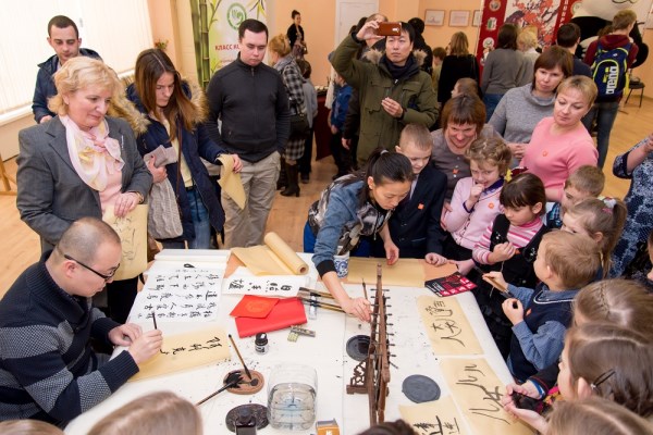文化体验环节里,孔子课堂师生精心布置了彩灯、茶艺、书法、剪纸等,还有超萌的大熊猫公仔,吸引了大批前来参加活动的白俄罗斯民众。文艺晚会上,精彩绝伦的节目更是将大家对此次活动的热情提升到了沸点。来自体育大学的中国留学生们的武术表演、孔子课堂学员的太极拳、中国传统民族舞蹈、现代流行歌曲以及中国民歌等节目精彩纷呈,在场观众起身喝彩,赞不绝口。