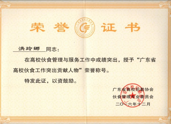 日前,从广东省高校后勤协会伙食管理专业委员会上获悉,由于管理到位、服务创新、业绩突出,我校饮食中心获得广东省高校伙食工作“先进单位”称号,中心副总经理洪玲娜获得“突出贡献人物”称号,鹏园餐厅经理张利获得“先进个人”称号。